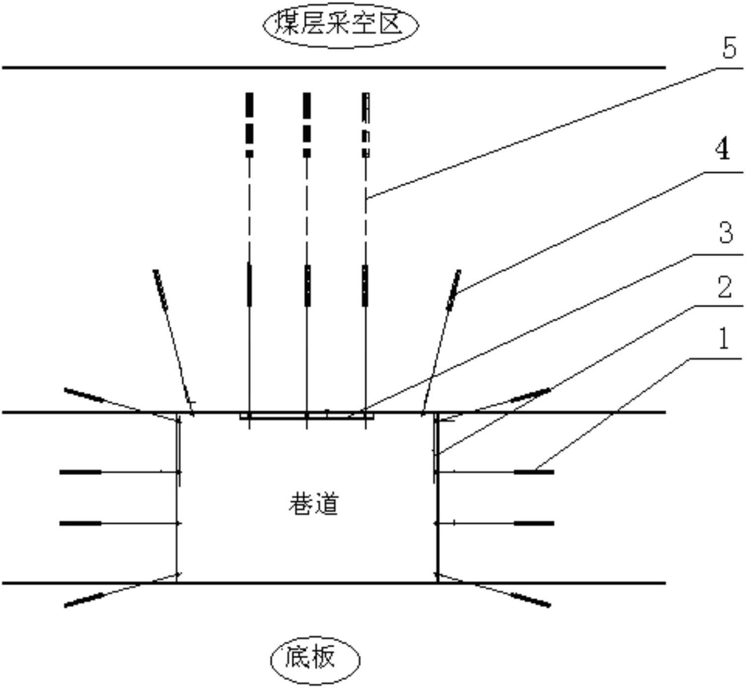 上述的锚索采用矿用笼型锚索,锚索直径17-18mm,锚索安装深度应靠近上部煤层采空区的底部,且至少为4500mm,最大破断力>353KN;