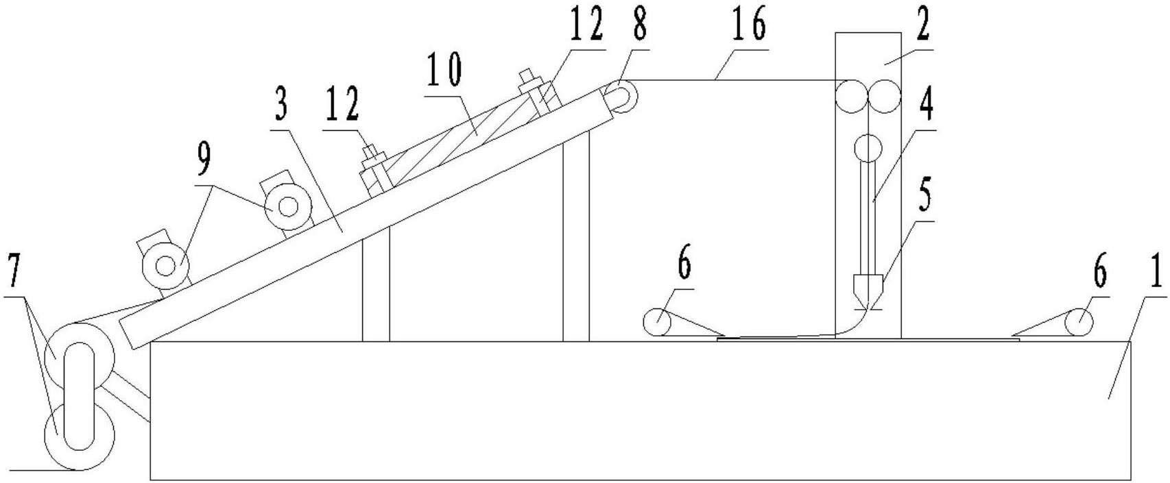 3.根据权利要求2所述的推平效果好的码布机,其特征在于:所述挡板(10)上靠近压紧辊(9)的一端设有弧形的导向段(14)。