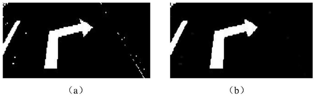 步骤4:对车道线间的初步感兴趣区域进行二值化处理,并用形态学开闭运算进行形态学滤波,再对二值图像进行边缘检测;对边缘检测图像中面积最大的闭和轮廓区域进行填充,得到可能包含路面交通标志的感兴趣区域;