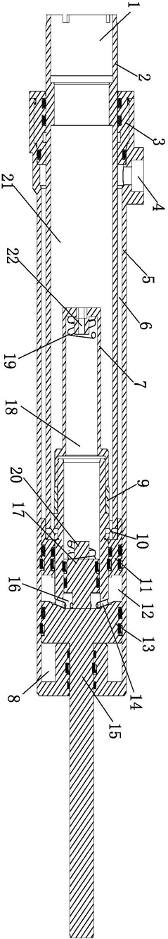 细活塞杆的内端具有中空内腔,所述中空内腔内沿轴向设有固定轴,第三活塞可滑动地套设在所述固定轴上,且第三活塞将中空内腔气密分隔成第二液腔和连接室,所述第二液腔通过开设在细活塞杆上的第三通孔与所述第一液腔连通;