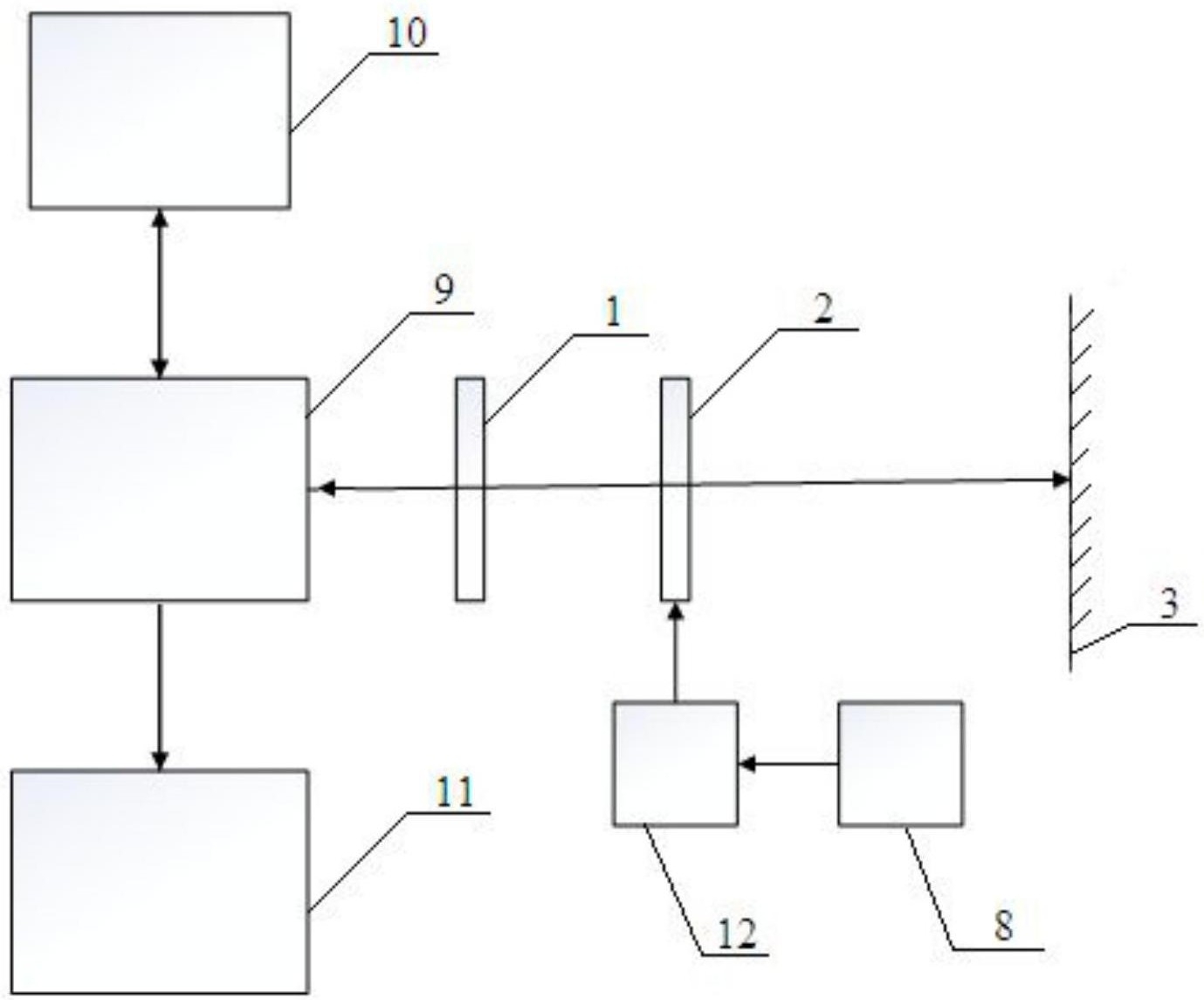 步骤一,将液晶空间光调制器(2)放入ZYGO干涉仪(9)和反射镜(3)之间,并且在ZYGO干涉仪(9)和液晶空间光调制器(2)之间加入偏振片(1),调节液晶空间光调制器(2)在ZYGO干涉仪(9)和反射镜(3)之间的位置,当控制器(10)显示3‑5条稳定、清晰的干涉条纹时,记录数据显示单元(11)显示的信息;数据显示单元(11)显示的数据有泽尼克多项式的系数;将灰度值255分成52等分,把从0开始每增加5个灰度值的灰度图加载到透射式液晶空间光调制器(2)并用ZYGO干涉仪(9)进行一次测量,最终测得透射式液晶空间光调制器(2)相位与灰度关系图;