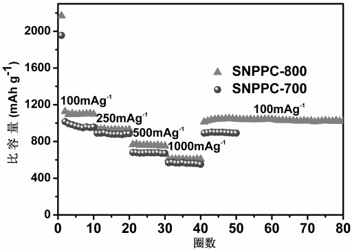 5.根据权利要求1所述的一种高S含量的P,S,N共掺杂的介孔碳材料的合成方法,其特征在于SNPPC-800产品中,其S含量高达12.58%,比表面积达到1122.46m2/g。