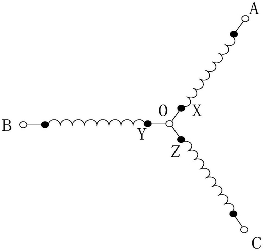1.一种牵引变压器,原边三相绕组为星形接法,原边三相绕组AX、BY、CZ的尾端X、Y、Z相接形成中点0,原边三相绕组AX、BY、CZ的首端A、B、C引出接三相电网;次边三相绕组ax、by、cz为△形接法,绕组ax首端a联至绕组cz尾端z形成端子r,绕组by首端b联至绕组ax尾端x形成端子s,绕组cz首端c联至绕组by尾端y形成端子t;其特征在于:端子r、s、t形成三相对称接线;在次边绕组by的中点抽出端子d,端子r与端子d构成端口rd,端口rd与端口st形成两相对称接线。