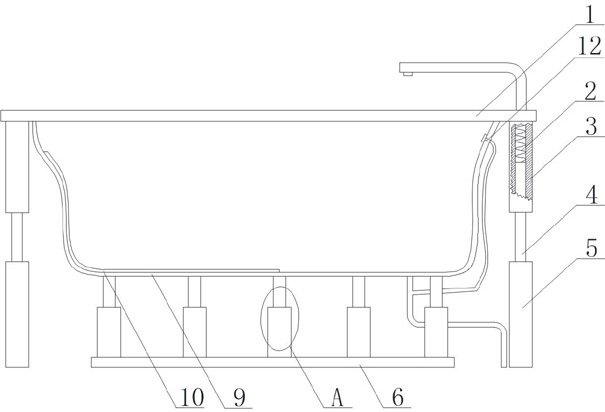 5.根据权利要求1所述的一种具有保护结构的改进型浴缸,其特征在于,所述溢水槽(12)上沿与浴缸边沿(1)的垂直距离为10至15cm。