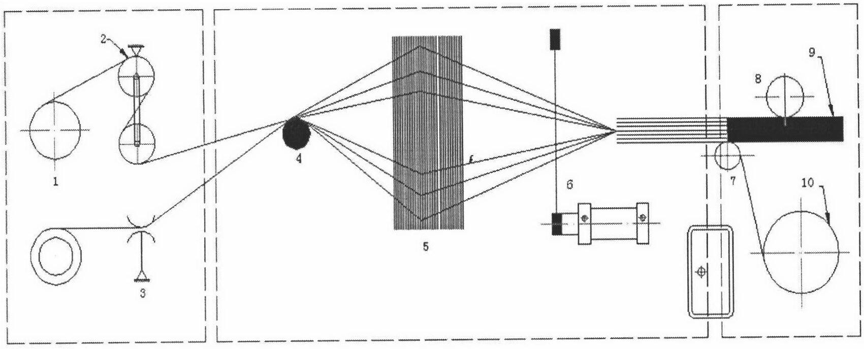 1.一种碳纤维多层角联织机纱线张力控制方法,其特征在于根据碳纤维机织材料的“柔性”、“不确定性”及工艺过程的“时变”特性和“非线性”特性,按照位移、角度、弹性变形、加压力送经过程后梁处动力学特性取拉普拉斯变换,应用梅逊公式得到高阶微分方程的传递函数特征方程,根据纺织工艺过程的分布参数系统特性,利用非线性系统分析方法,建立部分数学模型;所述分布参数包括线速度、稳度;经纱张力采用多变量前馈和张力反馈相结合的控制结构和智能控制算法,通过控制伺服电机转速以及张力调节装置来保持纱线张力恒定;在恒线速度卷线情况下,由理论计算和实验相结合确定初始设定张力值,在该张力控制下,碳纤维整经盘头成形良好,退绕不出现纱线分叉、毛羽现象;通过对称布置的传感器去检测片纱张力的大小,检测到的信号经A/D转换后与设定张力比较,通过迭代智能控制系统控制主轴转速以及纱线张力调节装置的调节,保持纱线的张力恒定。