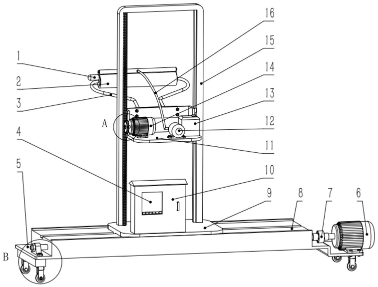 1.一种纵横向移动刷墙机,其特征在于包括横向移动机构,垂直设置在此横向移动机构上的纵向移动机构,设置在此纵向移动机构上的刷墙机构,设置在所述纵向移动机构上的反馈控制系统,所述的横向移动机构包括底座Ⅲ,与此底座Ⅲ相连接的丝杠遮挡箱,设置在所述底座Ⅲ底部的横向移动轮组,设置在所述底座Ⅲ上的丝杠支架,设置在所述底座Ⅲ上的电动机Ⅰ,与此电动机Ⅰ输出轴相连接的联轴器,与此联轴器相连接的丝杠,所述的丝杠设置在所述的丝杠遮挡箱内且支撑于所述的丝杠支架之上,所述的纵向移动机构包括与所述横向移动机构相连接的底座Ⅱ,设置在此底座Ⅱ底部的丝杠螺母,平行设置在所述底座Ⅱ上的两个纵向滑轨,设置在此两个纵向滑轨之间的且沿所述纵向滑轨上下移动的纵向移动平台,设置在所述两个纵向滑轨中任意一个纵向滑轨上的齿条,设置在每个纵向滑轨内侧的燕尾槽,所述的纵向移动平台包括底座Ⅰ,设置在此底座Ⅰ两侧边沿的燕尾槽导轨,设置在此底座Ⅰ上的电动机Ⅱ,与此电动机Ⅱ的输出轴相连接的齿轮,所述的齿轮与所述的齿条相啮合,所述的燕尾槽导轨与所述的燕尾槽滑动连接,所述的丝杠螺母与所述的丝杠相啮合。