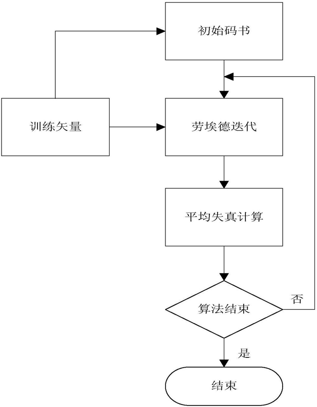 5.根据权利要求1所述的方法,其特征在于,将特征矩阵中预定分量Ur与训练矢量B1相乘得到训练矢量矩阵主成分BU,获取训练矢量和训练矢量主成分对应关系索引IB,依次将矩阵BU中的矢量利用高效排除不等式算法在初始码书主成分YU中快速搜索最佳匹配码字,依次将BU中的训练矢量划分到最佳匹配码字所对应的胞腔中,记录对应的码字索引,根据索引IB找到对应的原训练矢量。