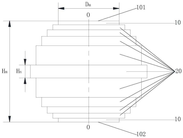 9.根据权利要求8所述的柱状分层龙勃透镜,其特征在于,所述柱状分层龙勃透镜从柱芯顶面到底面分为p层,采用3D打印技术分层打印制成,p>m+n。
