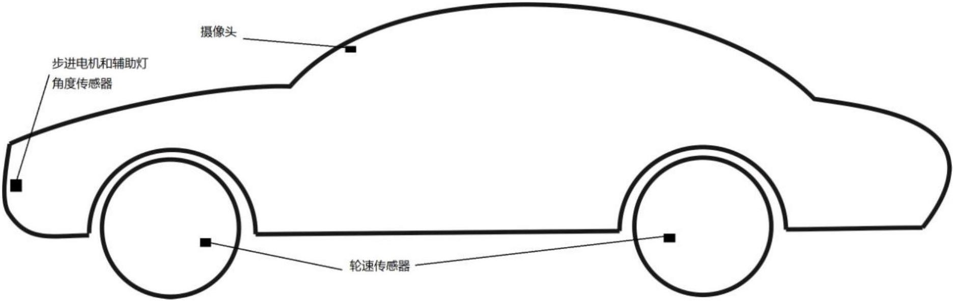 步骤九:在车辆的辅助灯上安装角度传感器,得到辅助灯的实际偏转角度;将辅助灯实际偏转角度和步骤八得到的辅助灯应偏转角度进行对比,得出辅助灯还需要偏转的角度。