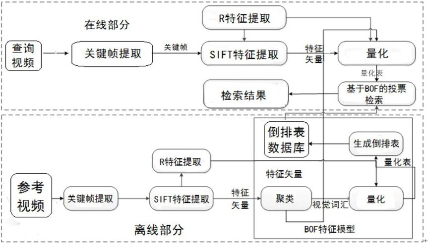 1.融合全局R特征的近似重复视频检索方法,其特征在于,具体按照以下步骤实施:步骤1、对数据库中视频提取局部SIFT特征;