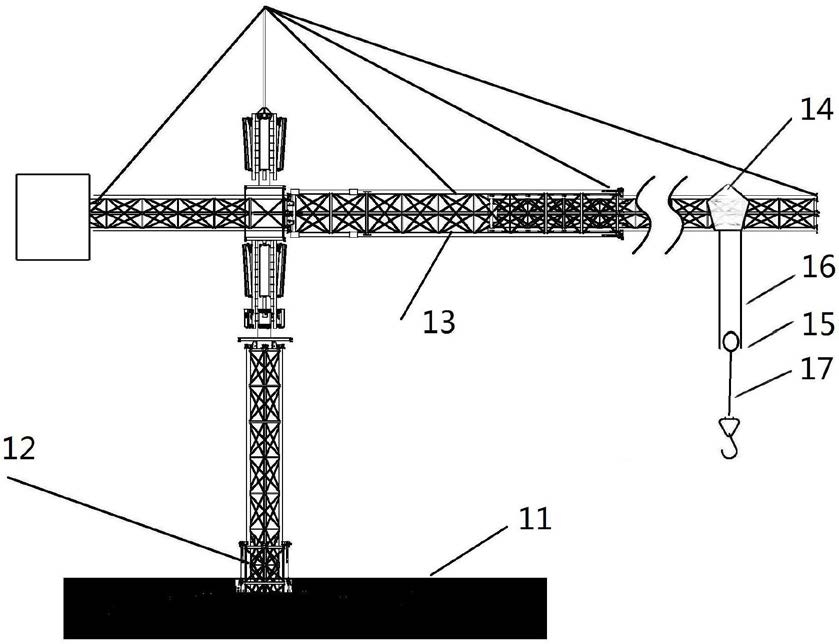9.根据权利要求1所述的建筑施工塔吊机,其特征在于,所述第二吊绳段长于所述吊钩的自身长度的5.2倍,短于所述吊钩的自身程度的20倍,所述建筑施工塔吊机还包括里程计,所述里程计用于确定所述第一吊绳段的长度,并发送给所述监控装置,所述监控装置确定出所述第二吊绳段的长度与所述第一吊绳段的长度之比在2:17到5:17之间时,才在所述监控装置确定所述第一流动站和的平面位置与所述第二流动站的平面位置相差超过预定阈值的情况下,视所述第一流动站、第二流动站和所述吊钩处于同一斜线上。