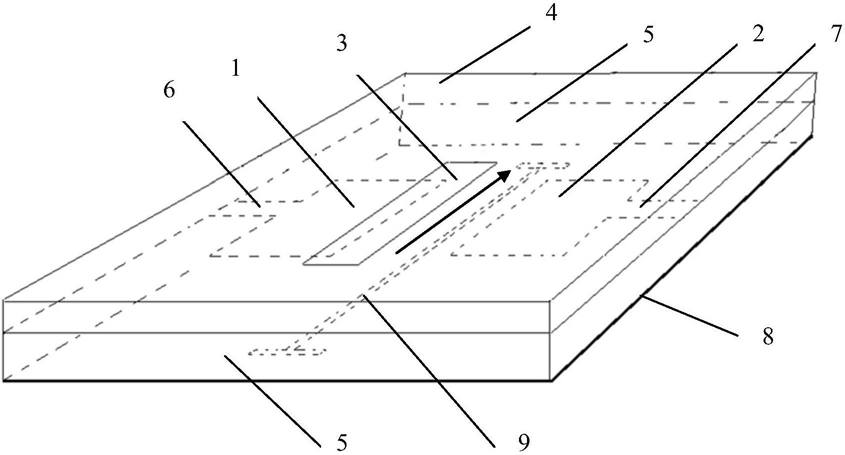6.根据权利要求1-5任一项所述的低耦合微带天线,其特征在于,所述第一、二、三金属贴片采用铜片,所述第一、二微带馈线采用铜条,所述金属地板(8)采用铜层。