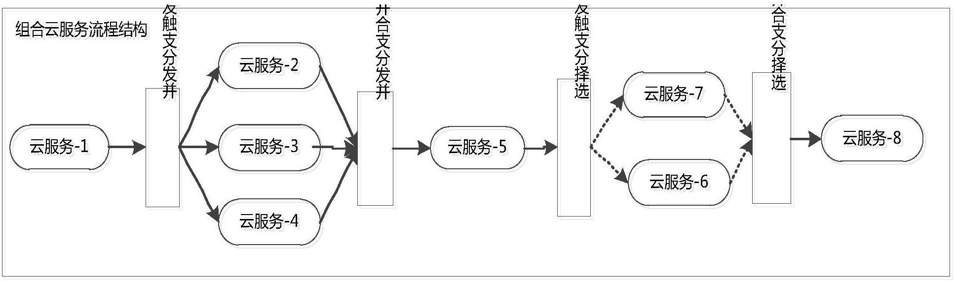 上式中,j表示某一组件云服务,s、t表示该组件云服务的直接前驱组件云服务和直接后继组件云服务;Rs和Rt分别表示组件云服务s和组件云服务j的信誉值;N表示组合云服务中组件云服务的数量;α表示调谐因子;初始组件云服务服务的ω设置为0,结束组件云服务的ω设置为2,对于处于中间位置的组件云服务的ω设置的值设置在0到2之间;EP(j)表示组件云服务j所在的一组执行方案,P(EPm)表示第m执行方案的执行概率;N(EPm)指第m个执行方案EPm被执行的次数,N(cs)表示组合云服务总共被执行的次数;Impj,cs表示组件云服务结构化上下文分值。