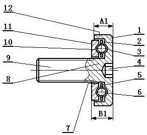 1.一种推力球轴承组件,包括带螺杆的推力球轴承和带销轴的推力球轴承,所述带螺杆的推力球轴承由座圈、保持架、滚珠和轴圈构成,所述座圈的左端面设有右环形圆弧槽,所述轴圈的右端面设有与右环形圆弧槽相向的左环形圆弧槽,所述右环形圆弧槽和左环形圆弧槽内设有均布在保持架上成套精密的滚珠;