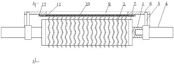 1.一种手动切面皮装置,包括转轴(1),安装在转轴(1)上的滚筒(2),设置在滚筒(2)上的多个均匀布置滚刀(3);