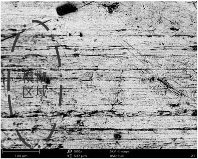 1.一种用于固定扫描电子显微镜待测样品的导电橡皮泥的加工方法,其特征在于,包括以下步骤:①采用金相橡皮泥,将其加热至20~40℃,②将橡皮泥放置在光滑玻璃平面上,用圆棍将其压平至厚度为0.5~1.5mm的薄片,③在薄片表面撒上长度为0.3~1.5cm的无上浆无胶长碳纤维单丝,碳纤维单丝含碳量≥95%,电阻率≤1.5×10﹣3Ωcm,碳纤维单丝之间相互搭接形成交错的二维结构,然后用圆棍轻轻将碳纤维单丝压入橡皮泥中, ④用软刷轻轻刷拭橡皮泥表面,去除未固定的碳纤维单丝,⑤对于橡皮泥表面碳纤维单丝分布稀疏的位置,重复③~④操作,保证橡皮泥表面已均匀黏附有相互搭接的碳纤维单丝,⑥将表面已均匀黏附有相互搭接的碳纤维单丝的橡皮泥向一侧轻轻卷起呈圆筒状,然后沿垂直于卷起方向将其压平至厚度为0.5~1.5mm薄片;⑦重复步骤③~⑥为一次完整的操作,重复该完整的操作5次~10次,通过多次分层添加碳纤维单丝后再进行异向挤压的动作后,添加在金相橡皮泥内部的无上浆无胶长碳纤维单丝之间形成相互连通的三维导电结构。