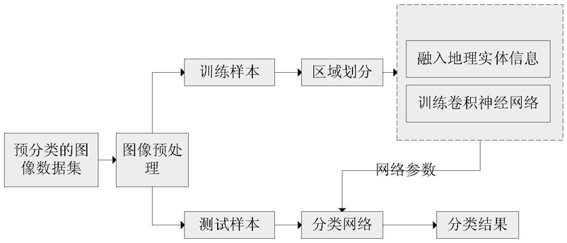 2.根据权利要求1所述的融合地理区域知识的多维度地理场景识别方法,其特征在于,步骤101对数据库中的图像进行预处理包括的步骤为:利用梯度锐化图片的步骤;去除离散噪声的步骤;采用双线性插值算法对图像进行缩放的步骤。