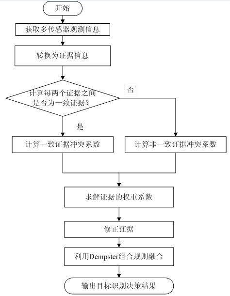 G、最后,采用Dempster组合规则对修正后的证据进行逐个融合,融合后焦元A的基本概率赋值m(A)的最大值对应的焦元为目标识别的决策结果对应的识别目标,即为决策最终结果。
