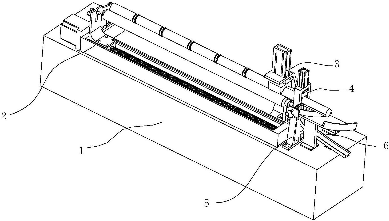 5.根据权利要求4所述的一种甘蔗自动切断去节装置,其特征在于:所述抵紧装置(3)包括第一支架(31)和设置在第一支架(31)顶部的第二气缸(32),所述第二气缸(32)的输出端穿过第一支架(31)向下延伸并安装有抵接块(33)。