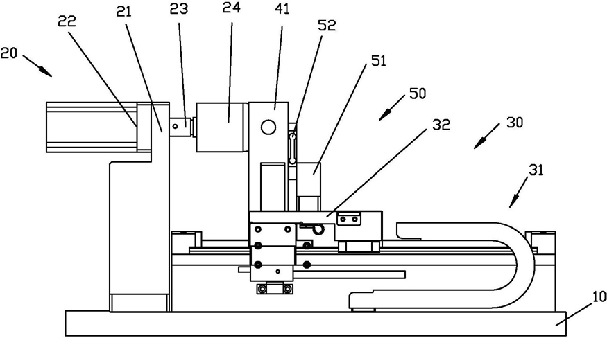 位置调整机构设在底座右侧,包括可沿左右方向往复运动的工作台;