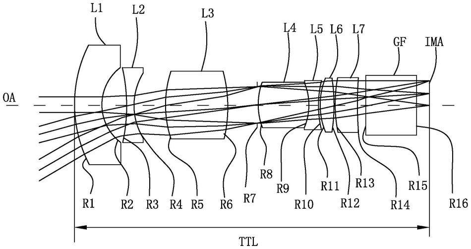 5.如权利要求1所述的用于三维测量的条纹投影镜头,其特征在于:满足条件公式0.32≤BFL/EFL≤0.40,其中FFL为第一透镜像方侧最外点至成像面的距离,BFL为用于三维测量的条纹投影镜头的第七透镜像方侧最外点至成像面的距离。