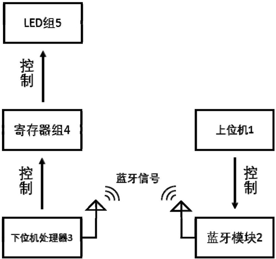 所述的寄存器芯片组将控制指令的串行输入转换为并行输出,并控制发光二极管的亮灯时长、闪烁方式、灯光亮度以及光色,单独控制每个发光二极管的发光;