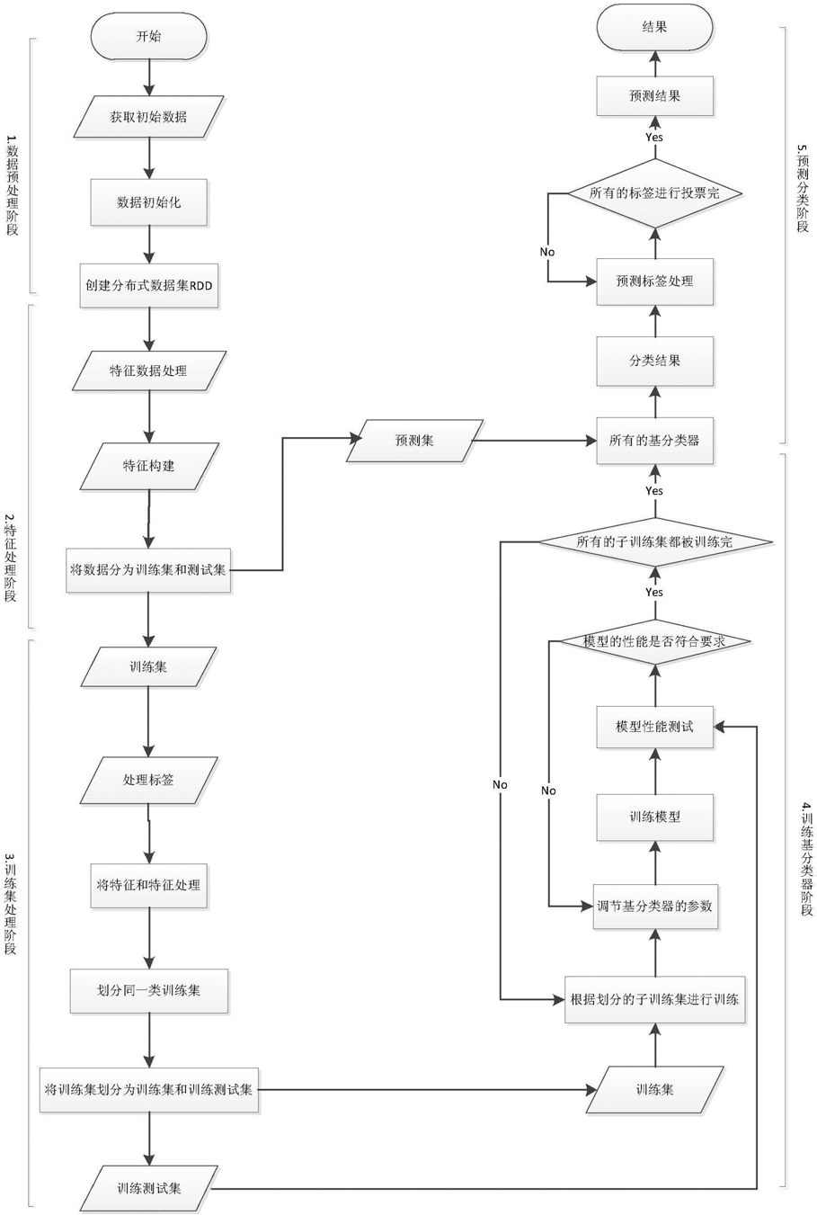 5.根据权利要求2所述的方法,其特征在于,利用Spark的RDD并行操作分布式数据集RDD,将数据集RDD的数据分成多个块,并行处理数据块中的数据,将数据转化为数字型数据;选择数据特征值建立特征集,分离预测集和训练集,将训练集的特征和标签进行分离。