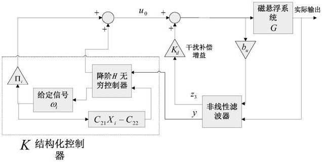 (2.2)通过求解线性矩阵方程组得到一个结构化控制器,获得被控对象与给定跟踪信号组成的扩阶系统;具体包括:(2.2.1)在磁悬浮系统中,构造一个结构化控制器: