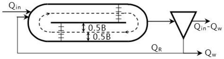 ⑦依据循环廊道的廊道宽B,循环廊道的有效水深H,混合液在循环廊道内的流速v,v取