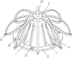 3.根据权利要求1所述的一种海绵城市种植屋面虹吸排水用雨水斗,其特征在于:所述弹性支杆(22)呈环形均匀分布在定位盘(2)上,弹性支杆(22)的数量等于触发杆(4)的数量,弹性支杆(22)的外端成型有插头(221),插头(221)的宽度小于插槽(41)的宽度,插头(221)的厚度小于插槽(41)的长度。