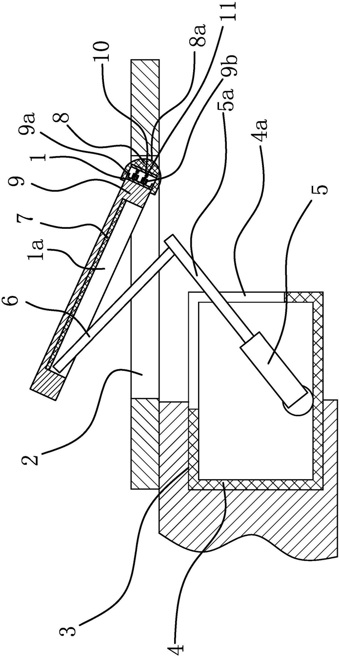 4.根据权利要求2所述的汽车天窗与车体的连接机构,其特征在于,所述的缓冲结构包括上定位板、下定位板和弹簧,所述下定位板位于连接套的底部处,上述上定位板靠近于连接套端口处且上定位板抵靠在本体内端,上述弹簧的两端分别顶压在上定位板和下定位板上。