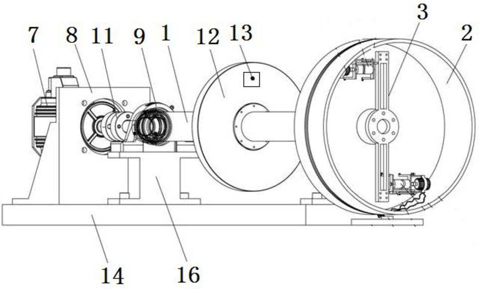 (2)通过测试,得到转轴的弯曲固有频率、扭转固有频率和转速之间的关系,(3)通过计算,确定由凸轮冲击式交变力矩扭振激振器输出扭振激励的大小及频率,(4)启动电机,设定旋转频率等于弯曲固有频率与扭转固有频率之差,将凸轮冲击式交变力矩扭振激振器输出扭振激励设定为扭振固有频率,由弯扭耦合共振理论,弯曲共振与扭转共振相互加强,产生足够的动应力来消除高刚度转轴的残余应力。