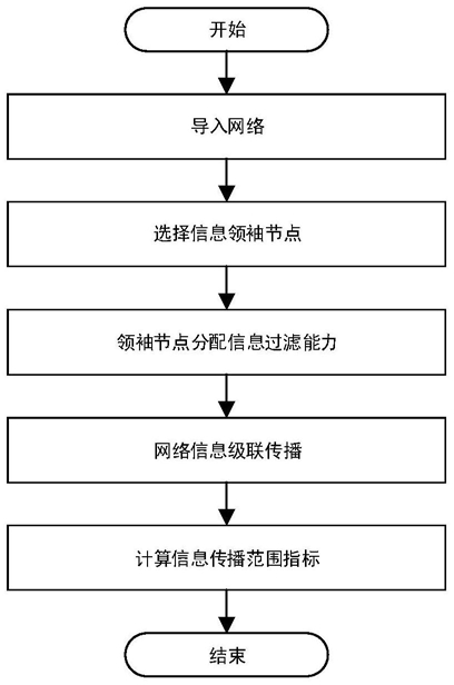 S3:分配过滤性能;网络中每一个节点k都具有分辨信息的能力,称之为过滤性能,记为Ik;根据网络信息传播模型,对集合Vfilter中的所有领袖节点,赋予其分辨信息的能力为I=