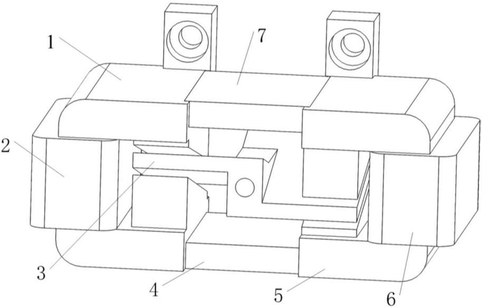 2.如权利要求1所述的一种线圈外置式斜翼力矩马达的使用方法,其特征在于:所述的左轭铁(1)和右轭铁(5)的开口侧上下两端分别加工出凹槽,上永磁体(7)、下永磁体(4)分别对称放置于左轭铁(1)和右轭铁(5)的凹槽中,用来提供极化磁势。