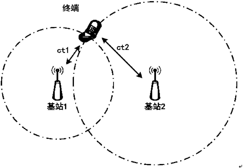 其中,τms均方根延迟扩展,T为τms在d=1km的中值,d为终端到基站的直线距离,ε是0.5到1的指数分量,ξ为均值为零、标准差σξ为4~6bB的对数正态分布随机变量,n为发送所述信号端对应的传播路径数量,τ0为视距波到达接收端的时间,τmax为时延最大的支路信号的到达时间,τmin=min(τ1…τn),τmsi为基站i的均方根延迟扩展。