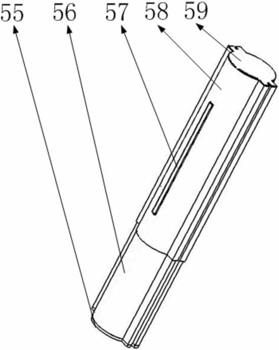 上述施压电磁伸缩杆和定位电磁伸缩杆结构完全相同,对于施压电磁伸缩杆,它包括电磁内杆底板、电磁内杆、电磁外杆、电磁外杆顶板、u型滑块、电磁单元、单元导电片、内杆导电片、内外杆导电片、外杆导电片、内杆弓型导轨、内杆弓型导轨中面、外杆弓型导轨、外杆弓型导轨中面,其中电磁内杆底板安装在电磁内杆底端,电磁内杆上具有对称分布的内杆弓型导轨;电磁外杆顶板安装在电磁外杆顶端,电磁外杆上具有对称分布的外杆弓型导轨,电磁外杆通过外杆弓型导轨内面与内杆弓型导轨外面的配合安装在电磁内杆外侧;电磁内杆上的内杆弓型导轨中面上安装有内杆导电片,电磁外杆上的外杆弓型导轨中面上安装有外杆导电片,在内杆导电片和外杆导电片交接处的电磁内杆顶端端面上安装有内外杆导电片;内外杆导电片一端固定连接内杆导电片,另一端与外杆导电片接触并对外杆导电片施加一定压力;电磁单元两侧对称安装有两个u型滑块,两个u型滑块u型凹面内部均安装有单元导电片,u型滑块与内杆弓型导轨、外杆弓型导轨滑动配合,单元导电片与内杆导电片、外杆导电片滑动接触;多个电磁单元上下依次通过u型滑块安装在电磁内杆和电磁外杆组成的空间内;上述电磁单元包括单元壳体、单元顶板、单元底板、线圈、导磁柱,其中导磁柱一端安装有单元底板,另一端安装有单元顶板,导电线圈缠绕在导磁柱上,单元壳体安装在单元底板上,导磁柱、线圈均位于单元壳体内;两个u型滑块对称安装在单元壳体外侧,线圈两端分别与对称安装的两个单元导电片连接;