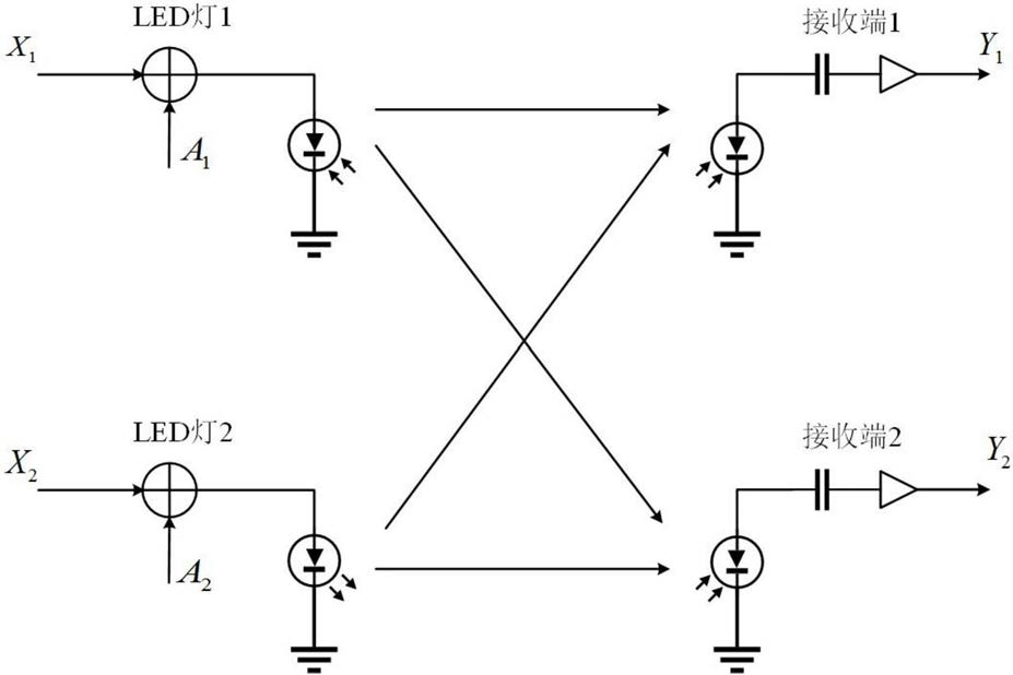步骤3,加入直流偏置Ai,设置加入直流偏置的发射信号为XiLED,其平均光功率为Po,i,平均电功率为Pe,i;