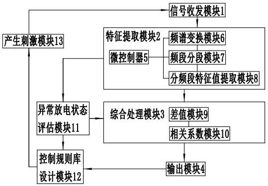 特征提取模块,与信号收发模块连接,用来对信号收发模块测得的LFP信号进行能量分析,并根据分析结果将LFP信号进行频谱分段,提取各频段的特征值;