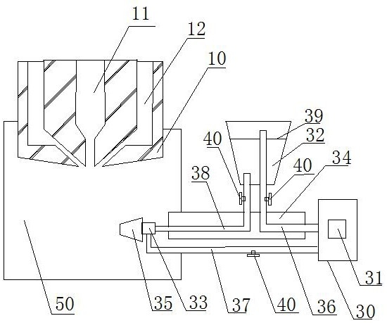3.根据权利要求1所述的装置,其特征在于,所述料槽(32)内还设置有隔板(39),所述隔板(39)具有预设数量的导孔,且在所述料槽(32)内所述物料的高度低于所述隔板(39),所述第一L型气管(36)的管口高度高于所述隔板(39),所述第三L型气管(38)的管口高度低于所述隔板(39)。