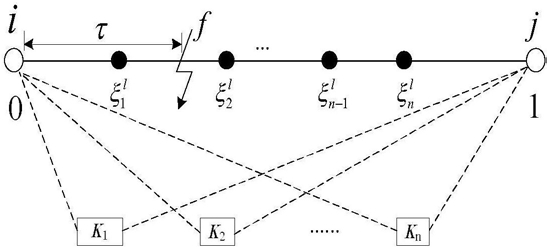其中,N为区段内节点数,R为临界点将整个系统分成的区段数,以 表示第l条线路上放电电磁波到达第k个节点,通过线路首端和末端的情况,即: 表示经过首端i端,为