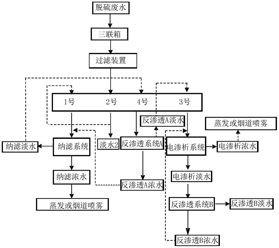 10.根据权利要求1所述的处理方法,其特征在于,经过所述2号水流道单元离子重组的产水回用至冷却塔补水或脱硫塔给水,所述反渗透B淡水回用至脱硫塔给水。