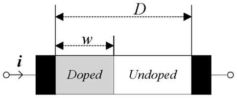 1.一种基于HP TiO2忆阻模型的等效模拟电路,其特征在于:包括比较器(1)、乘法器(2)、第一除法器(3)、积分器(4)、第一比例放大器(5)、第二比例放大器(7)和第二除法器(6),所述比较器(1)、乘法器(2)、第一除法器(3)、积分器(4)、第一比例放大器(5)、第二比例放大器(7)和第二除法器(6)顺次串联构成忆阻等效模拟电路;