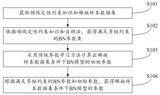 计算模块,用于采用传统参数学习方法计算出所述稀缺样本数据集条件下BN模型的初始参数;还用于根据所述满足多组约束的BN参数集和所述初始参数,计算所述稀缺样本数据集条件下BN模型的参数。