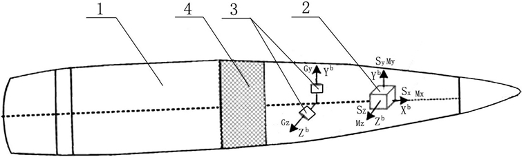 建立弹轴坐标系OXYZ,其中,弹轴坐标系和运动载体固连,坐标原点位于弹体的质心,Xz轴沿弹轴方向向前;Yz轴垂直于弹轴向上为正;Zb轴与Xz、Yz轴构成右手坐标系;