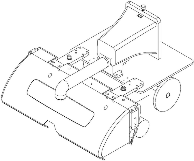 所述喷气组件包括空气压缩机、机架、喷气罩、气刀支架、气刀架、气刀支架座和气刀,所述空气压缩机安装在吸尘组件的底部,所述空气压缩机的出气口与所述气刀的进气口管路连通,且所述气刀的出气缝指向喷气罩前方;所述喷气罩通过气刀支架与设置在所述机架前部的气刀架固接,所述喷气罩的下部前方粘连橡胶片,所述喷气罩下部后方粘连毛刷,所述喷气罩上方设有吸尘入口和出尘口;所述气刀装通过所述气刀支架座安装在气刀支架上;所述机架的底部装有滚轮;