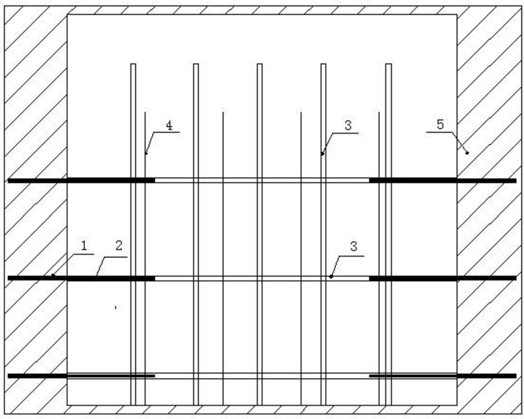3.根据权利要求1所述的一种钢筋混凝土密闭墙的施工方法,其特征在于,所述步骤3中模板由两边帮处向中部铺设,使得模板与边帮的接合处无间隙,如果模板中部存在间隙,则在间隙处铺设竖向模板填充。