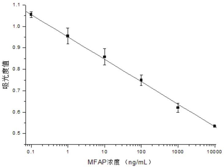 0.104lgC,相关系数R= -0.999,线性范围为0.82 6.31×104ng/mL,检出限为0.057 ng/mL;