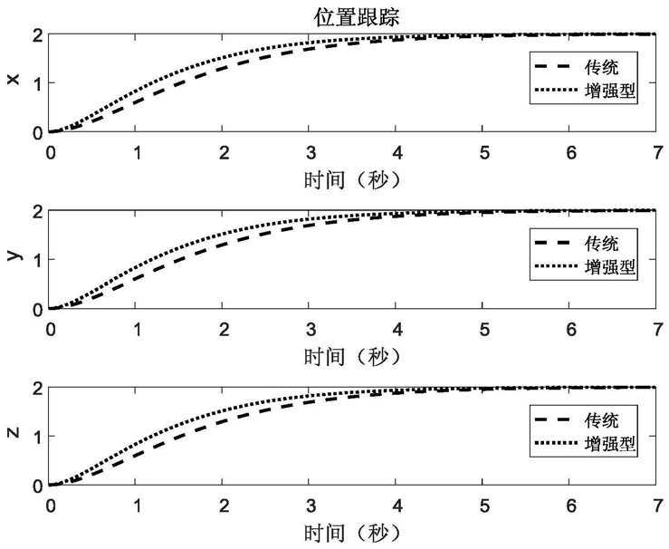 2.如权利要求1所述的一种四旋翼无人机系统的增强型快速幂次趋近律滑模控制方法,其特征在于:所述增强型快速幂次趋近律滑模控制方法还包括以下步骤:步骤4,证明滑动模态可以在有限时间到达平衡零点附近,同时验证增强型快速幂次趋近律的到达时间小于传统快速幂次趋近律的到达时间,过程如下: