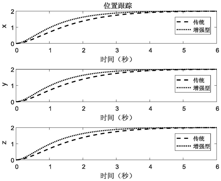 2.如权利要求1所述的一种四旋翼无人机系统的增强型双幂次趋近律滑模控制方法,其特征在于:所述增强型双幂次趋近律滑模控制方法还包括以下步骤:步骤4,证明滑动模态可以在有限时间到达平衡零点附近,同时验证增强型双幂次趋近律的到达时间小于传统双幂次趋近律的到达时间,过程如下: