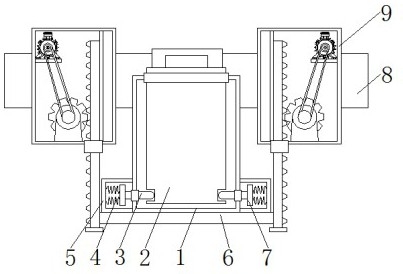 1.一种火车站儿童坠落用救援设备,包括外框(1),其特征在于:所述外框(1)的底部固定连接有底板(6),并且底板(6)顶部的两侧均固定连接有固定框(5),所述固定框(5)靠近外框(1)的一侧贯穿有固定杆(3),所述固定杆(3)位于固定框(5)内壁的一端固定连接有移动板(7),所述移动板(7)的一侧与固定框(5)的一侧之间固定连接有第一弹簧(4),所述底板(6)的两侧均固定连接有升降装置(9),所述升降装置(9)的后侧面固定连接有横板(8),所述横板(8)的顶部固定连接有卡锁装置(11)。